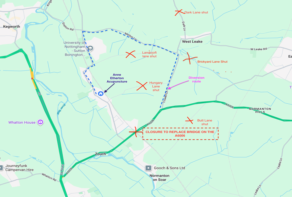 If you are coming from the north via Kegworth or Kingston on Soar proceed as normal as this will not affect you but please allow extra time due to more traffic on the route.